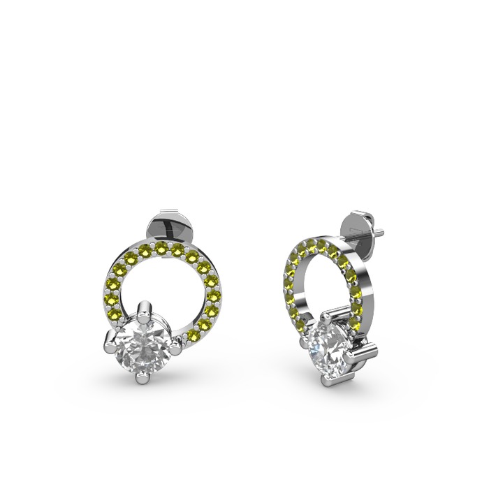 Beyaz zirkon ve peridot 18 ayar beyaz altın küpe