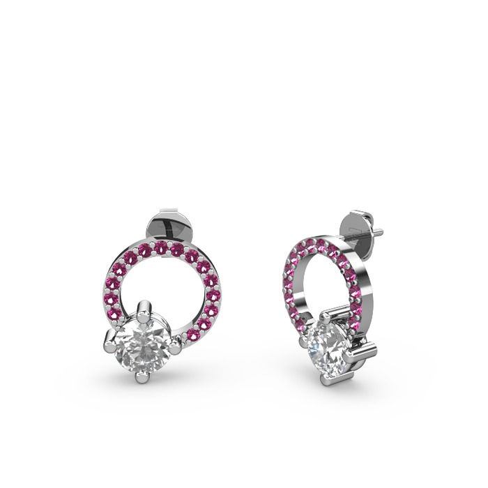 Beyaz zirkon ve rodolit garnet 14 ayar beyaz altın küpe