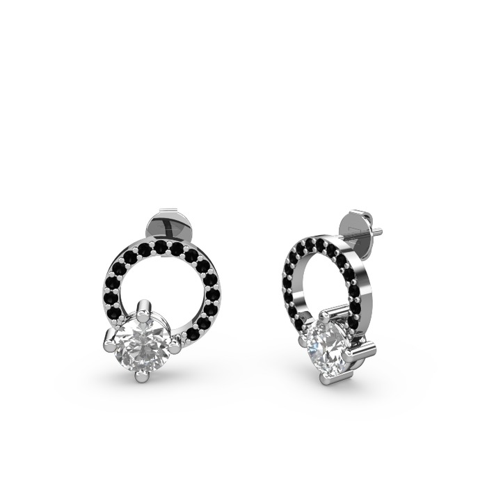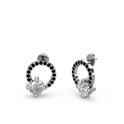 Beyaz zirkon ve siyah zirkon 14 ayar beyaz altın küpe