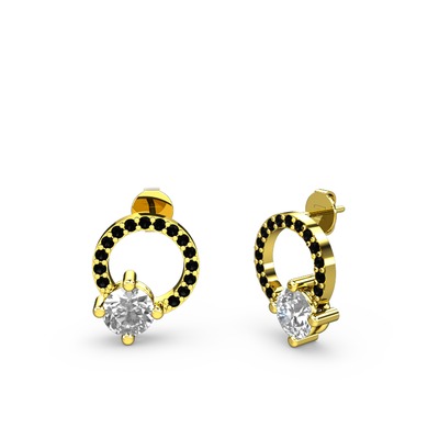 Beyaz zirkon ve siyah zirkon 925 ayar altın kaplama gümüş küpe