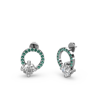 Beyaz zirkon ve yeşil kuvars 8 ayar beyaz altın küpe
