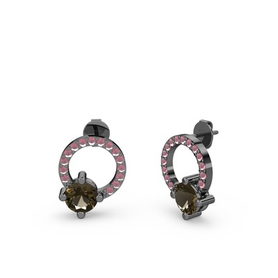 Dumanlı kuvars ve kök yakut 925 ayar siyah rodyum kaplama gümüş küpe