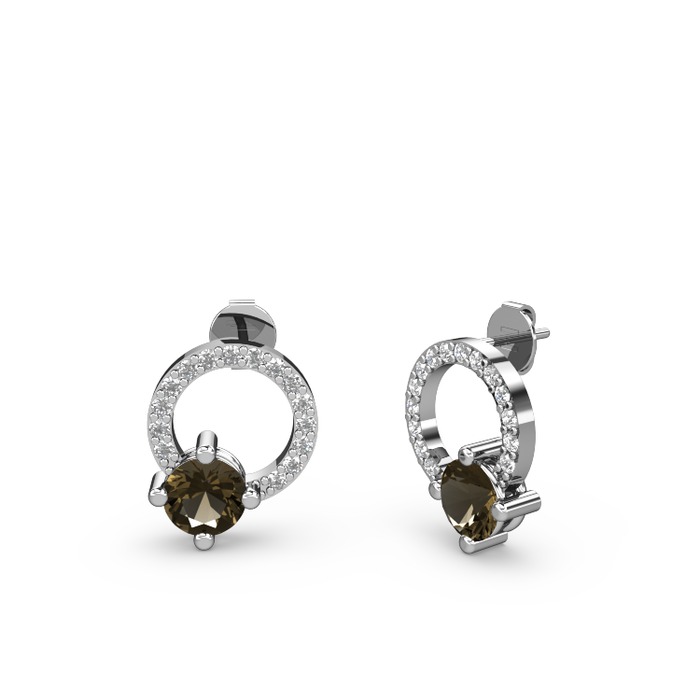 Dumanlı kuvars ve pırlanta 18 ayar beyaz altın küpe (0.45 karat)
