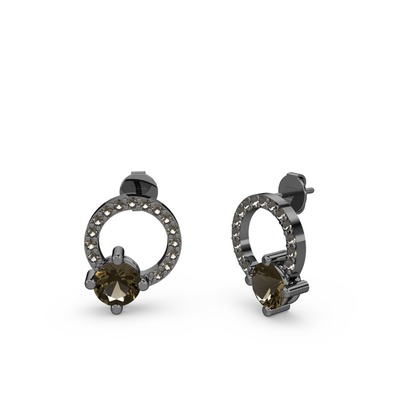 Dumanlı kuvars 925 ayar siyah rodyum kaplama gümüş küpe