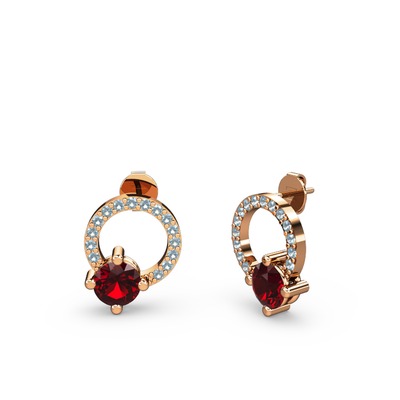 Garnet ve akuamarin 925 ayar rose altın kaplama gümüş küpe