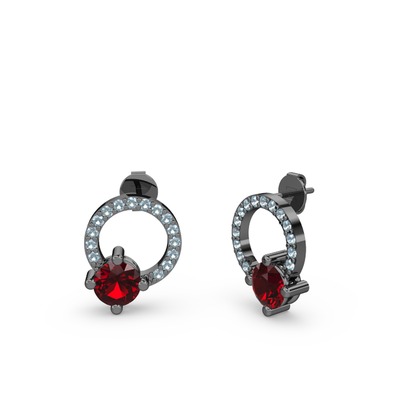 Garnet ve akuamarin 925 ayar siyah rodyum kaplama gümüş küpe