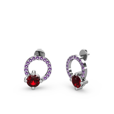 Garnet ve ametist 18 ayar beyaz altın küpe