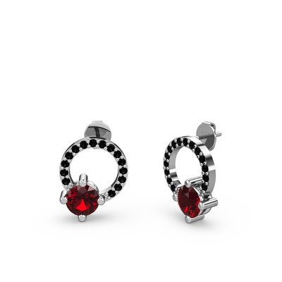 Garnet ve siyah zirkon 925 ayar gümüş küpe