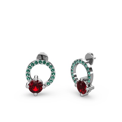 Garnet ve yeşil kuvars 925 ayar gümüş küpe