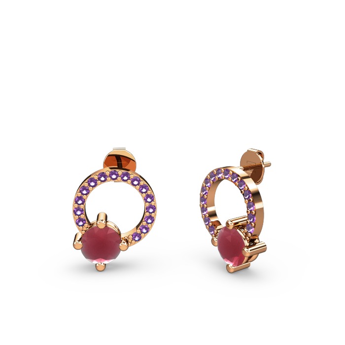 Kök yakut ve ametist 18 ayar rose altın küpe