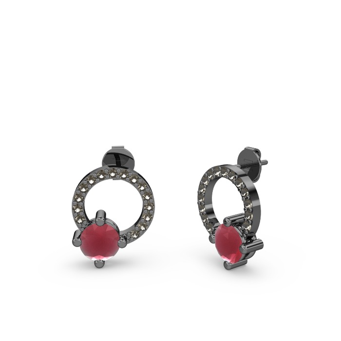 Kök yakut ve dumanlı kuvars 925 ayar siyah rodyum kaplama gümüş küpe