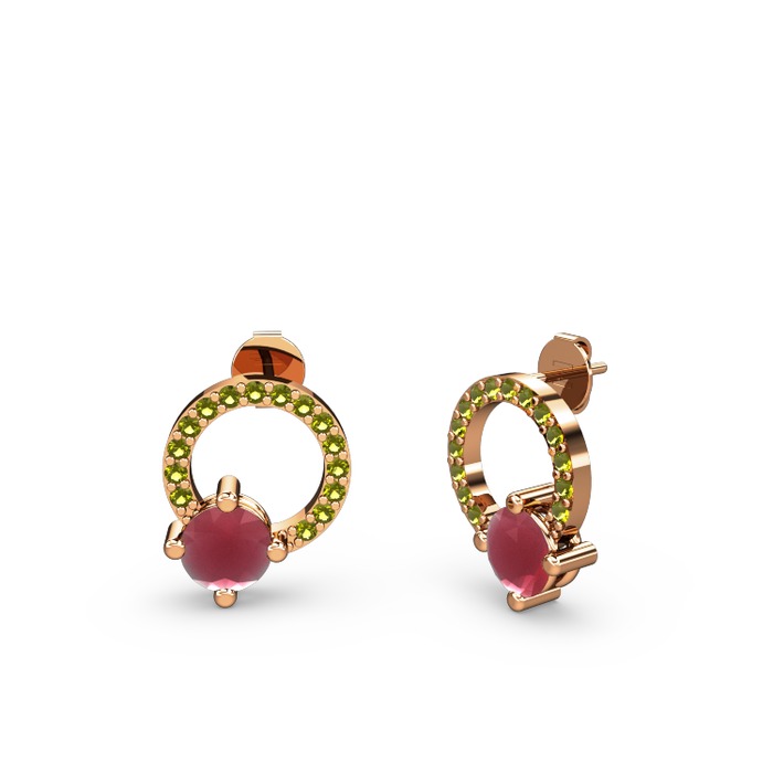 Kök yakut ve peridot 925 ayar rose altın kaplama gümüş küpe