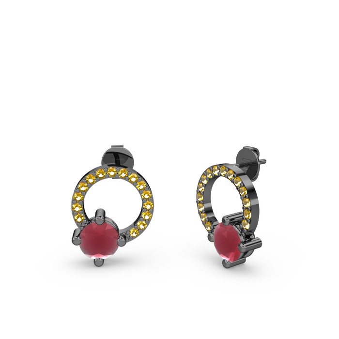 Kök yakut ve sitrin 925 ayar siyah rodyum kaplama gümüş küpe