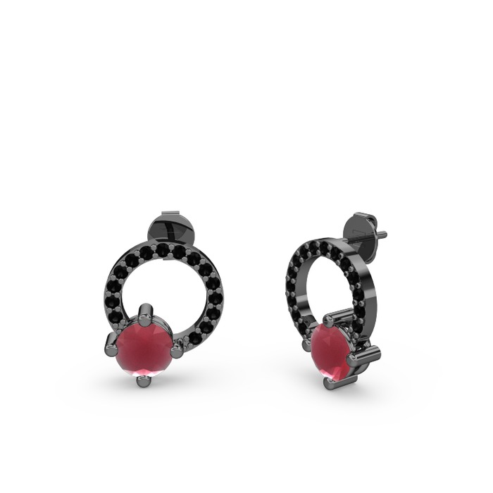 Kök yakut ve siyah zirkon 925 ayar siyah rodyum kaplama gümüş küpe