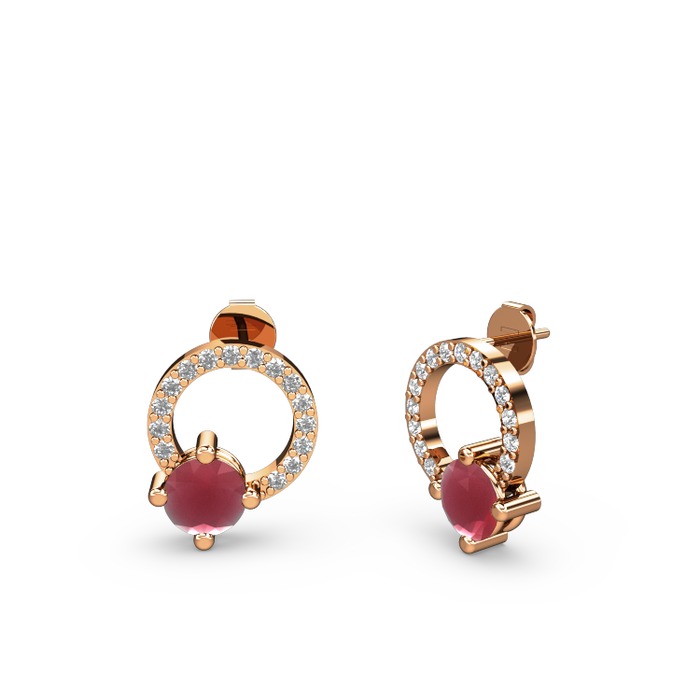 Kök yakut ve swarovski 925 ayar rose altın kaplama gümüş küpe