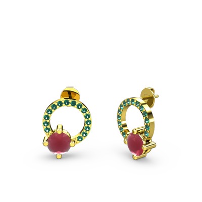 Kök yakut ve yeşil kuvars 8 ayar altın küpe