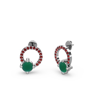 Kök zümrüt ve garnet 925 ayar gümüş küpe