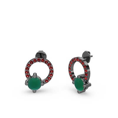 Kök zümrüt ve garnet 925 ayar siyah rodyum kaplama gümüş küpe