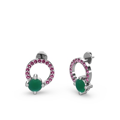 Kök zümrüt ve rodolit garnet 8 ayar beyaz altın küpe
