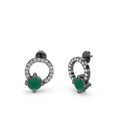 Kök zümrüt ve swarovski 925 ayar siyah rodyum kaplama gümüş küpe