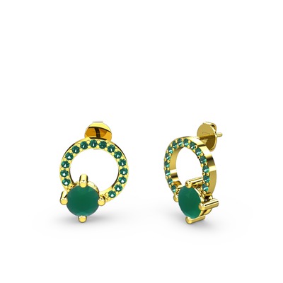 Kök zümrüt ve yeşil kuvars 8 ayar altın küpe