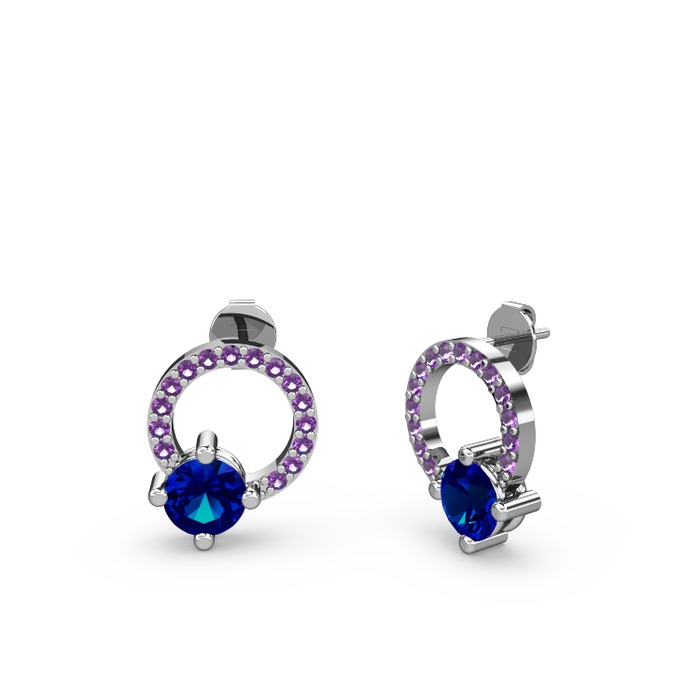 Lab safir ve ametist 18 ayar beyaz altın küpe