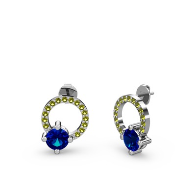 Lab safir ve peridot 14 ayar beyaz altın küpe