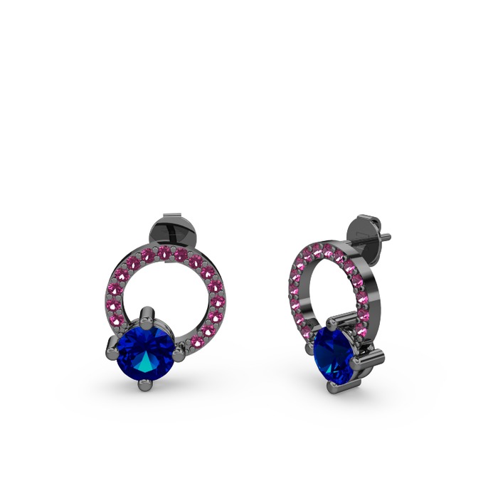 Lab safir ve rodolit garnet 925 ayar siyah rodyum kaplama gümüş küpe