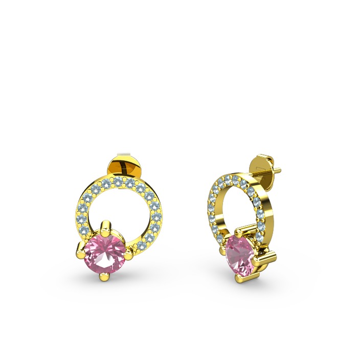 Pembe kuvars ve akuamarin 14 ayar altın küpe
