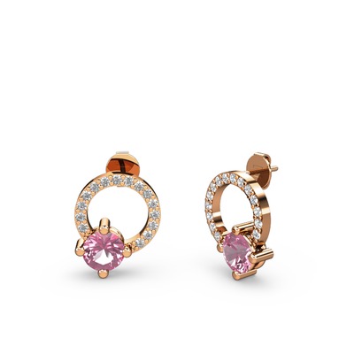 Pembe kuvars ve beyaz zirkon 18 ayar rose altın küpe