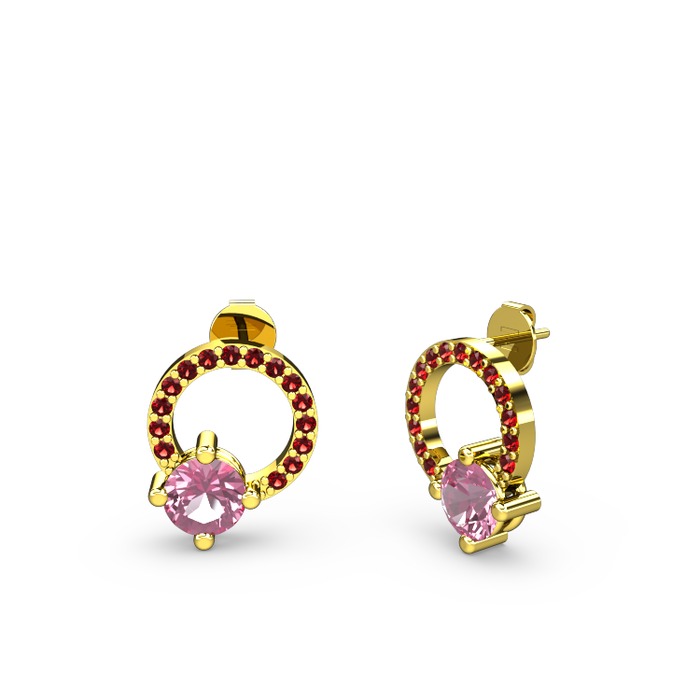 Pembe kuvars ve garnet 8 ayar altın küpe