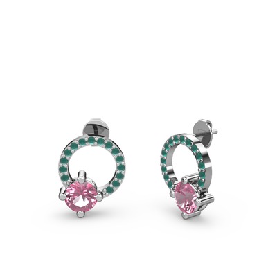 Pembe kuvars ve kök zümrüt 18 ayar beyaz altın küpe