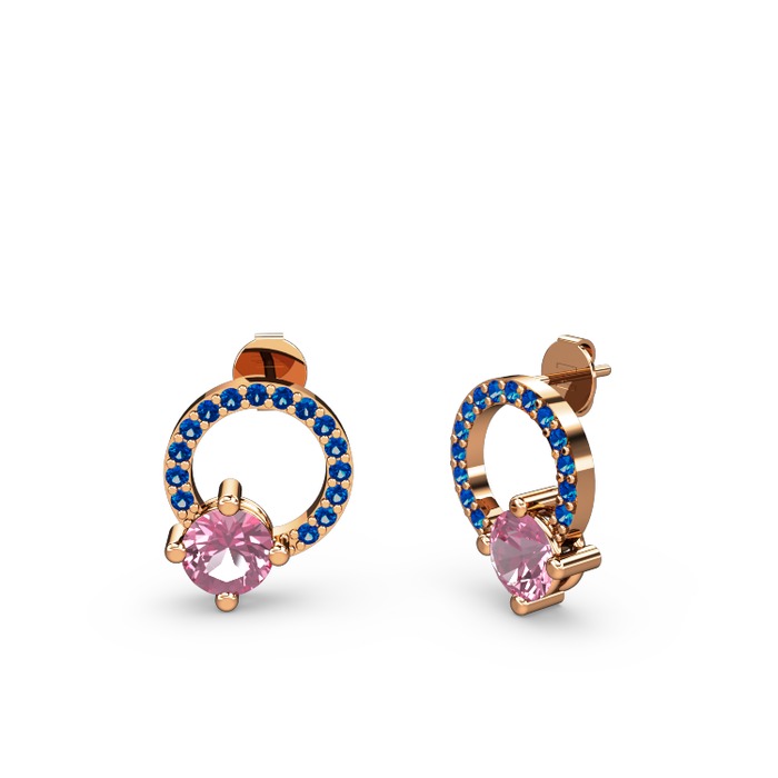 Pembe kuvars ve lab safir 925 ayar rose altın kaplama gümüş küpe