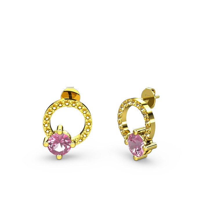 Pembe kuvars ve sitrin 925 ayar altın kaplama gümüş küpe