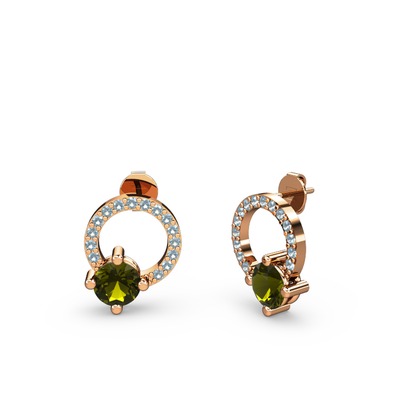 Peridot ve akuamarin 14 ayar rose altın küpe