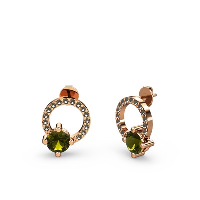 Peridot ve dumanlı kuvars 18 ayar rose altın küpe