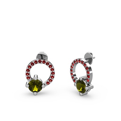 Peridot ve garnet 18 ayar beyaz altın küpe