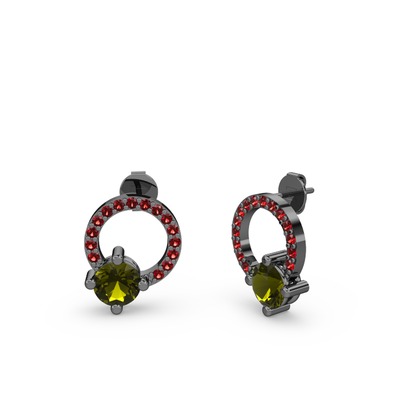 Peridot ve garnet 925 ayar siyah rodyum kaplama gümüş küpe