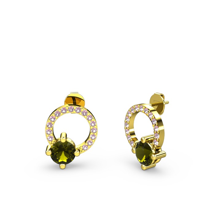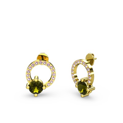 Peridot ve pembe kuvars 8 ayar altın küpe