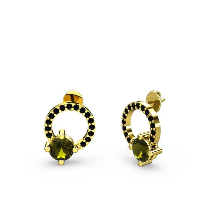 Peridot ve siyah zirkon 925 ayar altın kaplama gümüş küpe