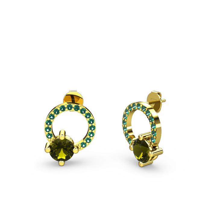 Peridot ve yeşil kuvars 14 ayar altın küpe