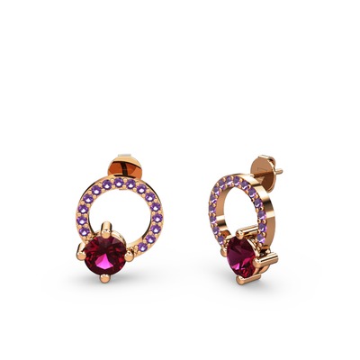 Rodolit garnet ve ametist 925 ayar rose altın kaplama gümüş küpe