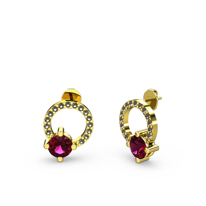 Rodolit garnet ve dumanlı kuvars 8 ayar altın küpe