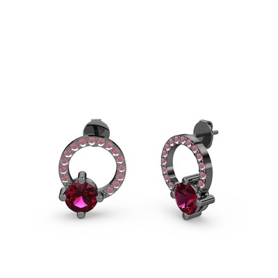 Rodolit garnet ve kök yakut 925 ayar siyah rodyum kaplama gümüş küpe