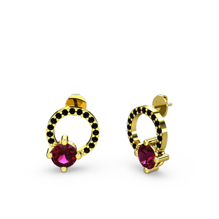 Rodolit garnet ve siyah zirkon 925 ayar altın kaplama gümüş küpe