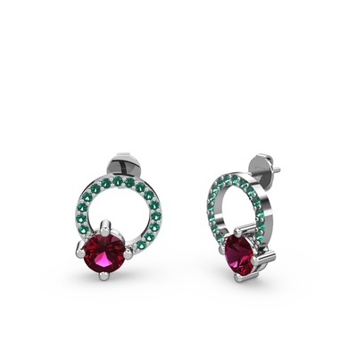 Rodolit garnet ve yeşil kuvars 18 ayar beyaz altın küpe