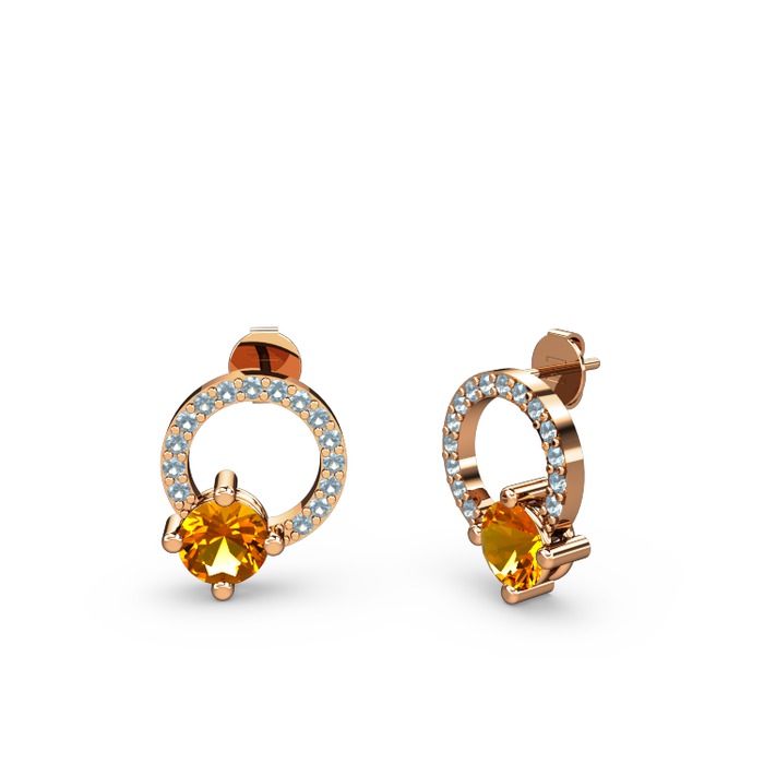 Sitrin ve akuamarin 18 ayar rose altın küpe