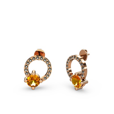 Sitrin ve dumanlı kuvars 14 ayar rose altın küpe