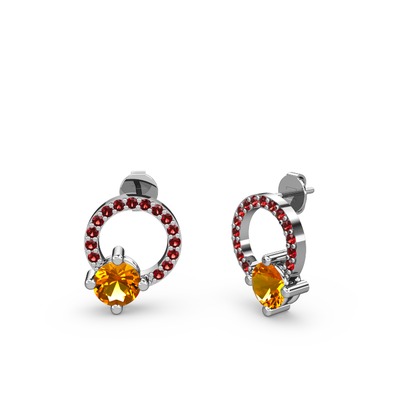 Sitrin ve garnet 8 ayar beyaz altın küpe
