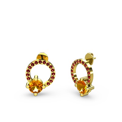 Sitrin ve garnet 925 ayar altın kaplama gümüş küpe